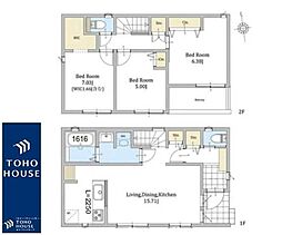 | 間取り | 4LDK 間取り内訳:リビングダイニングキッチン 16.8帖(1階)・洋室 6.3帖(2階)・洋室 5.1帖(2階)・洋室 4帖(2階)・洋室 4帖(2階) |