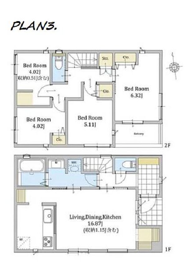 | 間取り | 4LDK 間取り内訳:リビングダイニングキッチン 16.8帖(1階)・洋室 6.3帖(2階)・洋室 5.1帖(2階)・洋室 4帖(2階)・洋室 4帖(2階) |