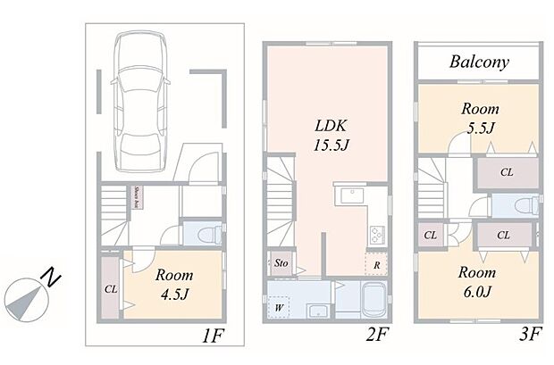 | 間取り | 3LDK 間取り内訳:洋室 4.5帖・リビングダイニングキッチン 15.5帖・洋室 6帖・洋室 5.5帖 |