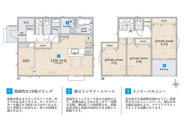 敷地54坪超を最大限に活用した高性能3LDK住宅 カースペース2台付き/ゆとりある大型敷地の住まい ~ 当 物 件 の お す す め ポ イ ン ト ~ ■人気トレンドのDEN(小上がり)を採用した19帖リビング ■食洗機やタッチレス水栓など、設備充実のオープンキッチン ■すべてのお部屋が南に面した、採光・通風良好な間取り ■洗面室とランドリーが独立し、渋滞の起きにくい動線を実現 ■土間収納や廊下クローゼットなど、随所に収納を配しました など 【販売・管理】住協 入間支店