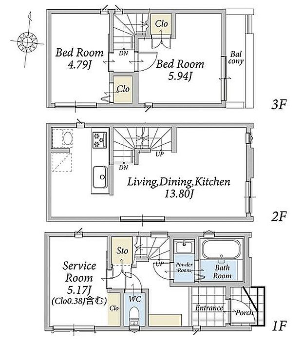 | 間取り | 2LDK+S | 建物階 | 木造、地上3階建て |