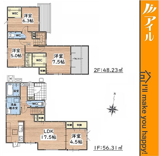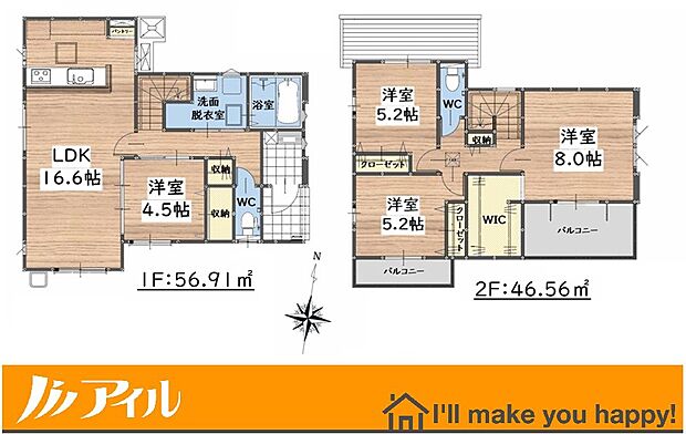 | 建物面積 | 101.85m2~104.54m2 | ||
