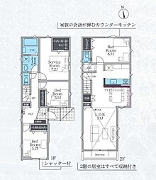 | 間取り | 3LDK 間取り内訳:リビングダイニングキッチン 22帖(1階)・洋室 8帖(2階)・洋室 5.2帖(2階)x2 |