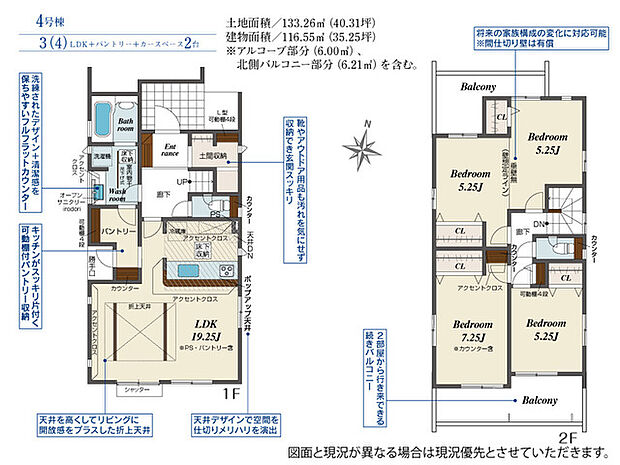 | 間取り | 3LDK(間仕切り対応プラン) 間取り内訳:リビングダイニングキッチン 19.2帖・洋室 10.5帖・洋室 7.2帖・洋室 5.2帖 |