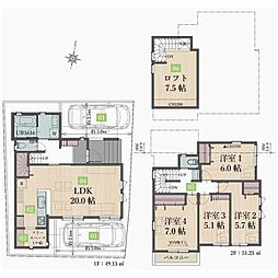 | 間取り | 4SLDK 間取り内訳:リビングダイニングキッチン 16.2帖(1階)・洋室 4.3帖(1階)・洋室 6.8帖(2階)・洋室 6帖(2階)・洋室 5帖(2階)・収納 2.3帖(2階) |
