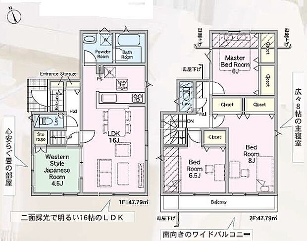 | 間取り | 4LDK 間取り内訳:リビングダイニングキッチン 16帖(1階)・和室 4.5畳(1階)・洋室 8帖(2階)・洋室 6.5帖(2階)・洋室 6帖(2階) |