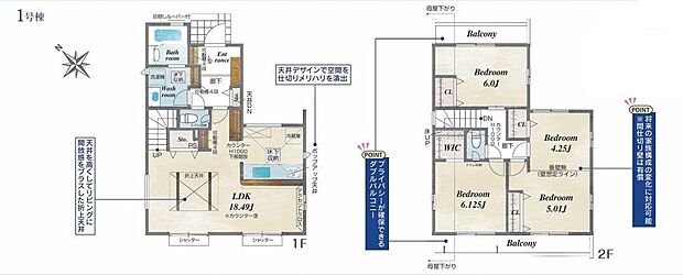 広々リビング18帖超え☆2階寝室はライフスタイルに合わせてアレンジできる可変型☆WIC・床下収納・可動棚・等嬉しい収納が豊富☆