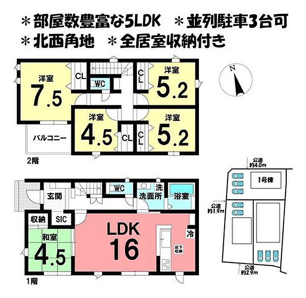■並列駐車3台可■部屋数豊富な5LDK■水回り集約で便利な家事導線■収納豊富な間取り■閑静な住宅街