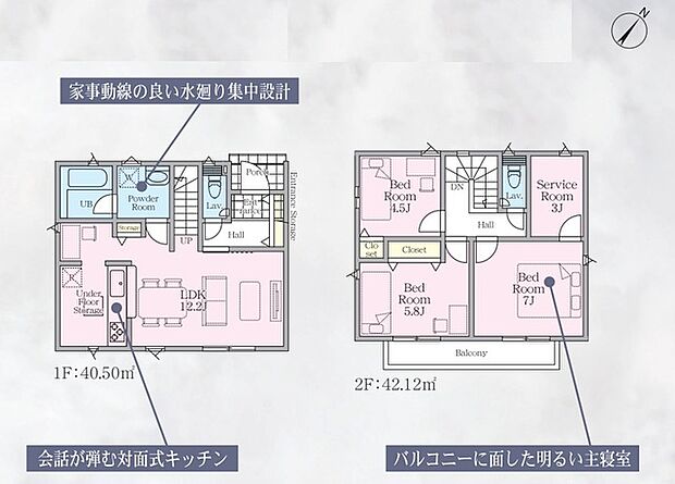 | 間取り | 3SLDK 間取り内訳:リビングダイニングキッチン 12.2帖・洋室 7帖・洋室 5.8帖・洋室 4.5帖・収納 3帖 |