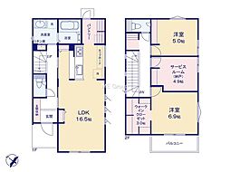 | 間取り | 2SLDK 間取り内訳:リビングダイニングキッチン 15.1帖(1階)・洋室 7帖(2階)・洋室 5.1帖(2階)・収納 5帖(2階) |