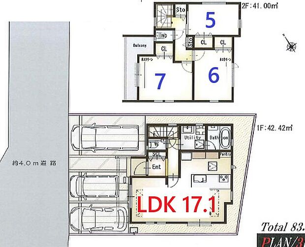 | 間取り | 3LDK 間取り内訳:リビングダイニングキッチン 17.1帖(1階)・洋室 7帖(2階)・洋室 5帖(2階)・洋室 6帖(2階) |