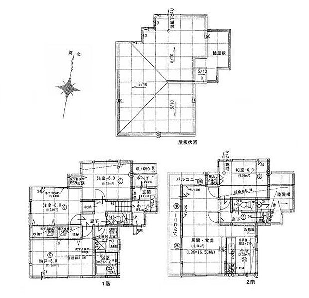 | 間取り | 3SLDK 間取り内訳:洋室 6帖(1階)・洋室 6帖(1階)・収納 8帖(1階)・和室 6畳(2階)・リビングダイニングキッチン 16.5帖(2階) |