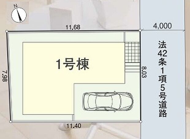 • 東 (私道 幅員 4.00m 接面 8.00m)