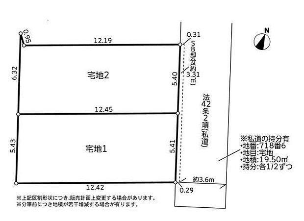 | 私道負担 | 19.5m2私道負担割合:2分の1 | 用途地域 | 第一種住居地域 |