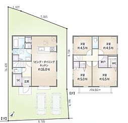 | 間取り | 4LDK 間取り内訳:リビングダイニングキッチン 16帖(1階)・洋室 4.5帖(2階)・洋室 5帖(2階)・洋室 6.5帖(2階)・洋室 4.5帖(2階) |