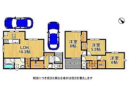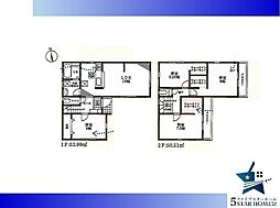 | 間取り | 3SLDK 間取り内訳:収納 5帖(1階)・洋室 6帖(1階)・洋室 5.9帖(1階)・洋室 4.7帖(2階)・リビングダイニングキッチン 15.5帖(2階) |