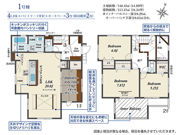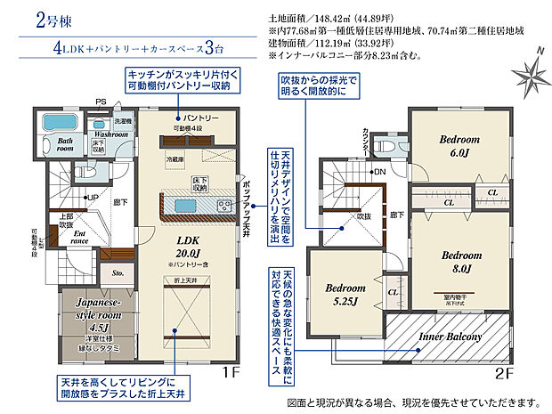 | 建物面積 | 112.19m2(約33.93坪)~113.23m2(約34.25坪) | ||