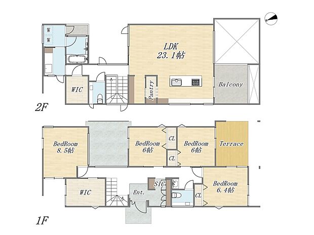 | 間取り | 4LDK+2WIC+SIC+Pantry+中庭+テラス+カースペース |