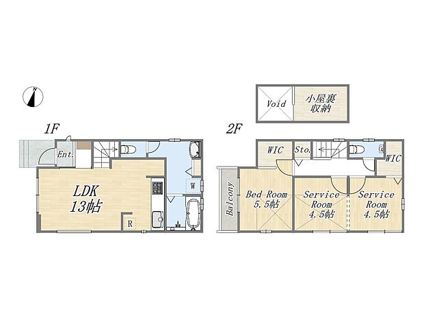 | 間取り | 1LDK+2S+2WIC+小屋裏収納+カースペース | 建物階 | 木造2階建 |