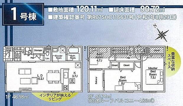 | 間取り | 3LDK 間取り内訳:リビングダイニングキッチン 19.9帖(1階)・洋室 8帖(2階)・洋室 7.5帖(2階)・洋室 4.7帖(2階) |