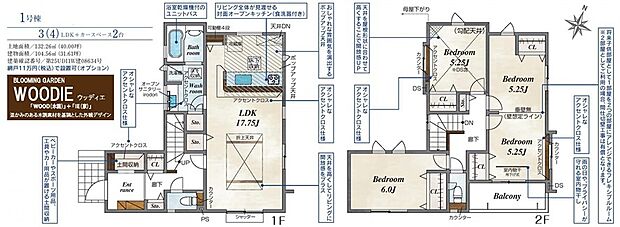 | 間取り | 3LDK(将来4LDKに対応可。) 間取り内訳:リビングダイニングキッチン 17.7帖(1階)・洋室 5.2帖(2階)・洋室 6帖(2階)・洋室 10.5帖(2階) |