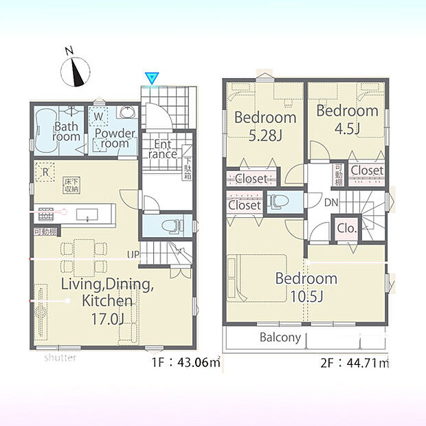 | 間取り | 3LDK 間取り内訳:リビングダイニングキッチン 17帖・洋室 10.5帖・洋室 5.2帖・洋室 4.5帖 |
