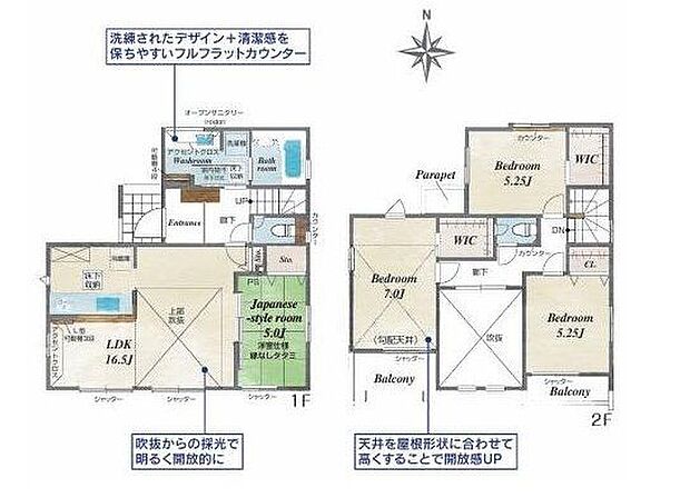 ■開発分譲地全6棟■カースペース2台分駐車可能(車種による)■LDKはアクセントクロス、上部吹抜仕様■松延小学校まで徒歩5分