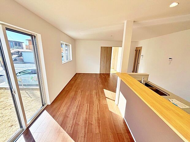 ◆朝から日差しいっぱい♪南向きリビング17.5帖!家族の会話を楽しみながら料理ができる対面キッチン♪雨の日に洗濯物も干せる浴室乾燥機付き!2面採光で日当たり良好♪大容量のWIC付♪並列駐車3台可◎