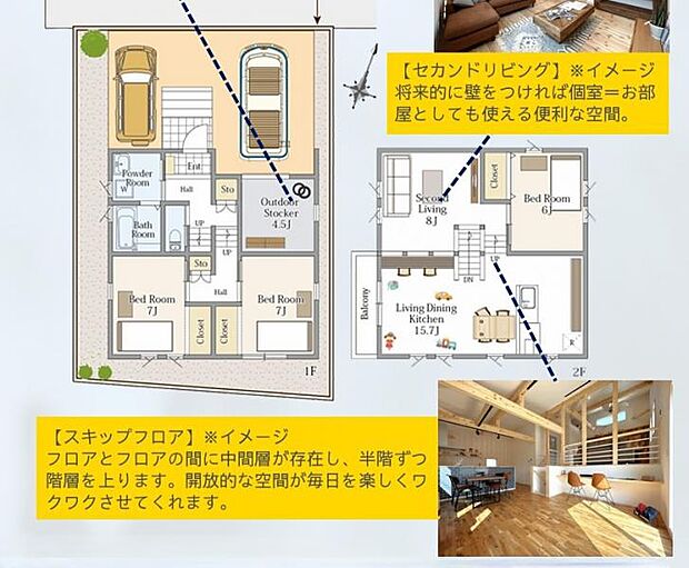暮らしやすさと遊び心を兼ね備えた住まいです。上溝駅まで徒歩10分、日々のお買い物も徒歩10分圏内で完結する便利なロケーション。室内はスキップフロアが空間に奥行きを生み、家族の気配を感じながらもほどよい