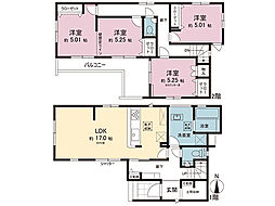| 間取り | 4LDK 間取り内訳:リビングダイニングキッチン 15.2帖(1階)・洋室 5.2帖(2階)x3・洋室 5.3帖(2階) |