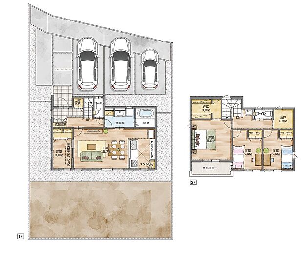 - 「建築条件付き土地」の「建物プラン例」は、土地購入者の設計プランの一例であり、プランの採用可否は任意です。