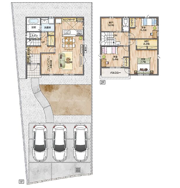 • 「建築条件付き土地」の「建物プラン例」は、土地購入者の設計プランの一例であり、プランの採用可否は任意です。
