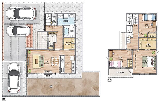 • 【【No.3】完成予想外観】通り抜け可能!2.0帖のパントリーでお買い物もらくちん♪
