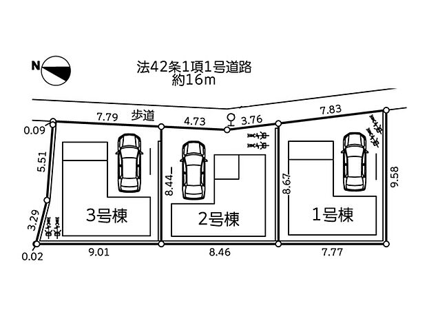 1号棟:東16m /3号棟:東16m