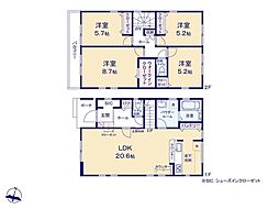| 間取り | 4LDK 間取り内訳:洋室(1階)・リビングダイニングキッチン 16.8帖(2階)・洋室(3階)x3 |