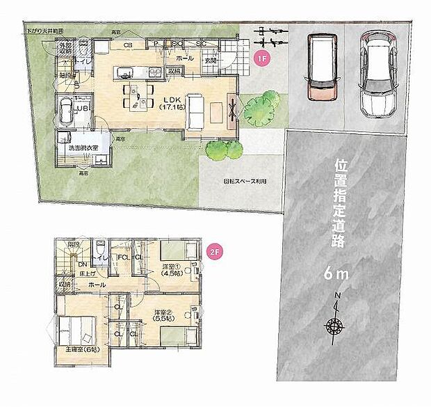 | 間取り | 3LDK 間取り内訳:リビングダイニングキッチン 17.1帖(1階)・洋室 4.5帖(2階)・洋室 5.5帖(2階)・洋室 6帖(2階) |