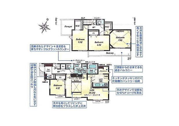 | 間取り | 4LDK 間取り内訳:洋室 4.5帖・リビングダイニングキッチン 20.2帖・洋室 6帖・洋室 6帖・洋室 7帖 |