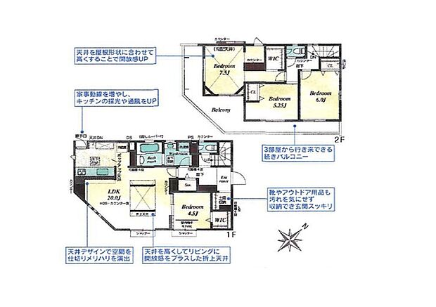 | 間取り | 4LDK 間取り内訳:リビングダイニングキッチン 20帖・洋室 4.5帖・洋室 7.5帖・洋室 5.2帖・洋室 6帖 |