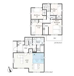 | 間取り | 4LDK 間取り内訳:リビングダイニングキッチン 16帖(1階)・洋室 5帖(1階)・洋室 6帖(2階)・洋室 6帖(2階)・洋室 7帖(2階) |