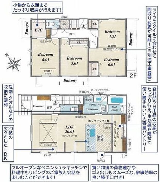 | 間取り | 3LDK 間取り内訳:リビングダイニングキッチン 20帖(1階)・洋室 10.5帖(2階)・洋室 6帖(2階)・洋室 5帖(2階) |