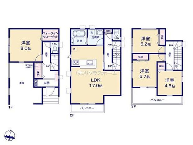 | 間取り | 4LDK 間取り内訳:リビングダイニングキッチン 17帖・洋室 8帖・洋室 5.7帖・洋室 5.2帖・洋室 4.5帖 |