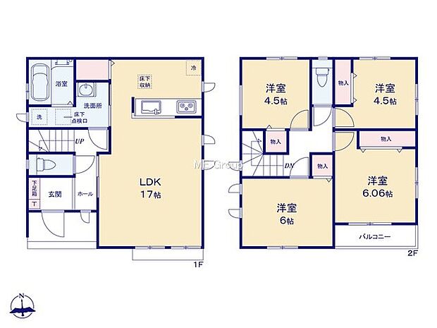 • 「建築条件付き土地」の「建物プラン例」は、土地購入者の設計プランの一例であり、プランの採用可否は任意です。