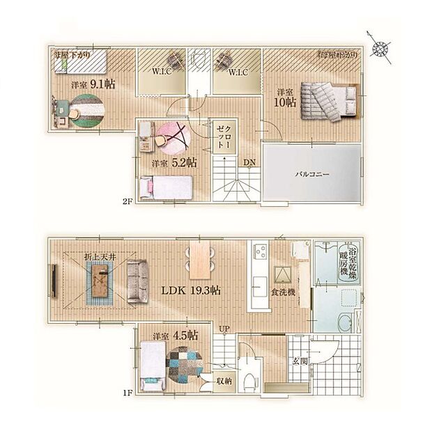 | 間取り | 4LDK 間取り内訳:リビングダイニングキッチン 19.3帖・洋室 4.5帖・洋室 10帖・洋室 9.1帖・洋室 5.2帖 |