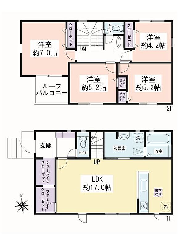 | 間取り | 4LDK 間取り内訳:リビングダイニングキッチン 17帖(1階) |