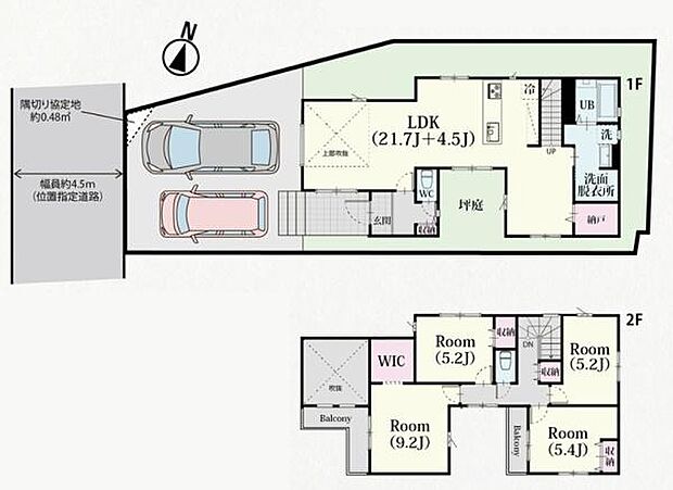 | 間取り | 4LDK 間取り内訳:リビングダイニングキッチン 26.2帖(1階)・洋室 9.2帖(2階)・洋室 5.4帖(2階)・洋室 5.2帖(2階)・洋室 5.2帖(2階) |