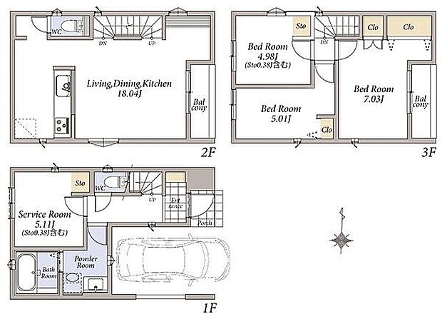 | 間取り | 2LDK+S~3LDK+S | 建物階 | 木造、地上3階建て |