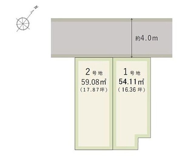 土地面積 54.11m2(約16.36坪)・59.08m2(約17.87坪)