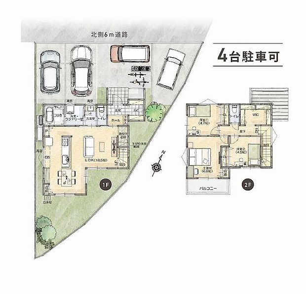 | 間取り | 3LDK 間取り内訳:リビングダイニングキッチン 18.5帖(1階)・洋室 4.7帖(2階)・洋室 4.5帖(2階)・洋室 6.8帖(2階) |