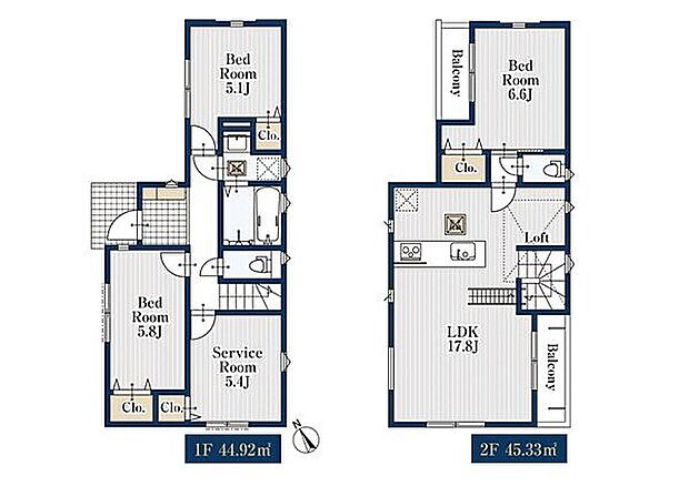 2面バルコニーで風通し良好。全居室収納・ロフト付きで収納充実の新邸です。
