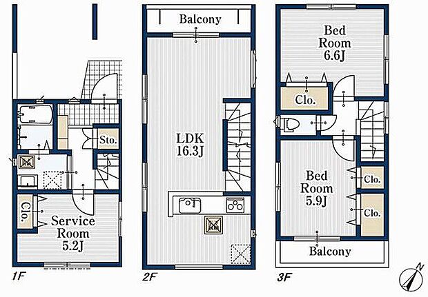 | 間取り | 2LDK+S | 建物階 | 木造、地上3階建て |